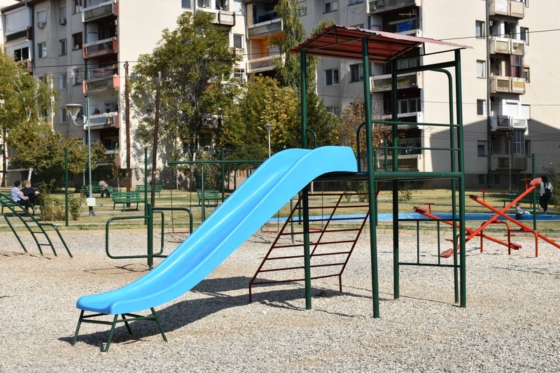 нови подлоги, клупи, лизгалки и останати детски реквизити. Обележени