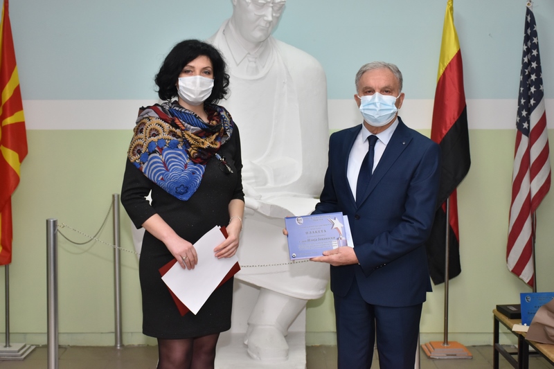 За континуираната поддршка во работењето на училиштето и неговиот придонес за подобрување на условите за настава, на денешното одбележување на патрониот празник, на градоначалникот Јованоски му беше врачена благодарница.