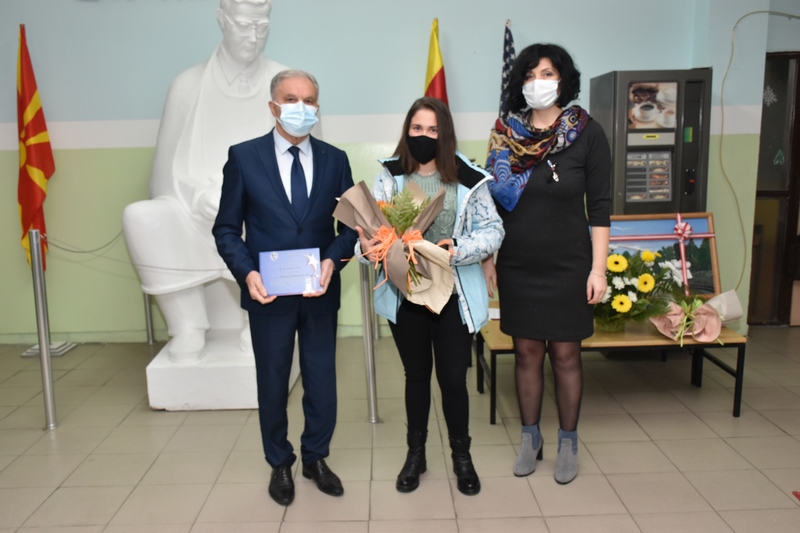 Благодарница доби и младата поетеса Ана Марија Манческа, ученик во ООУ