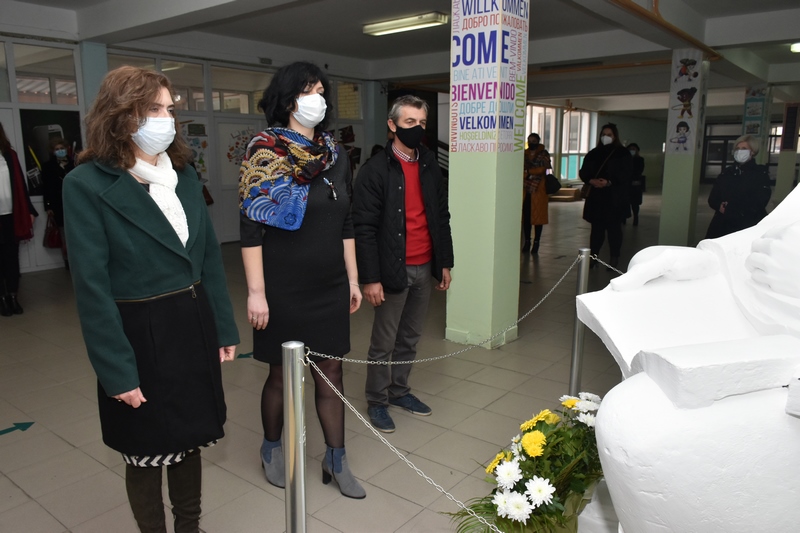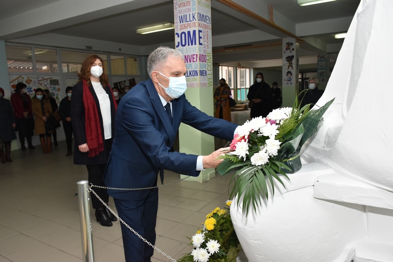 положија свежо цвеќе пред неговата биста во истоименото училиште во градот.