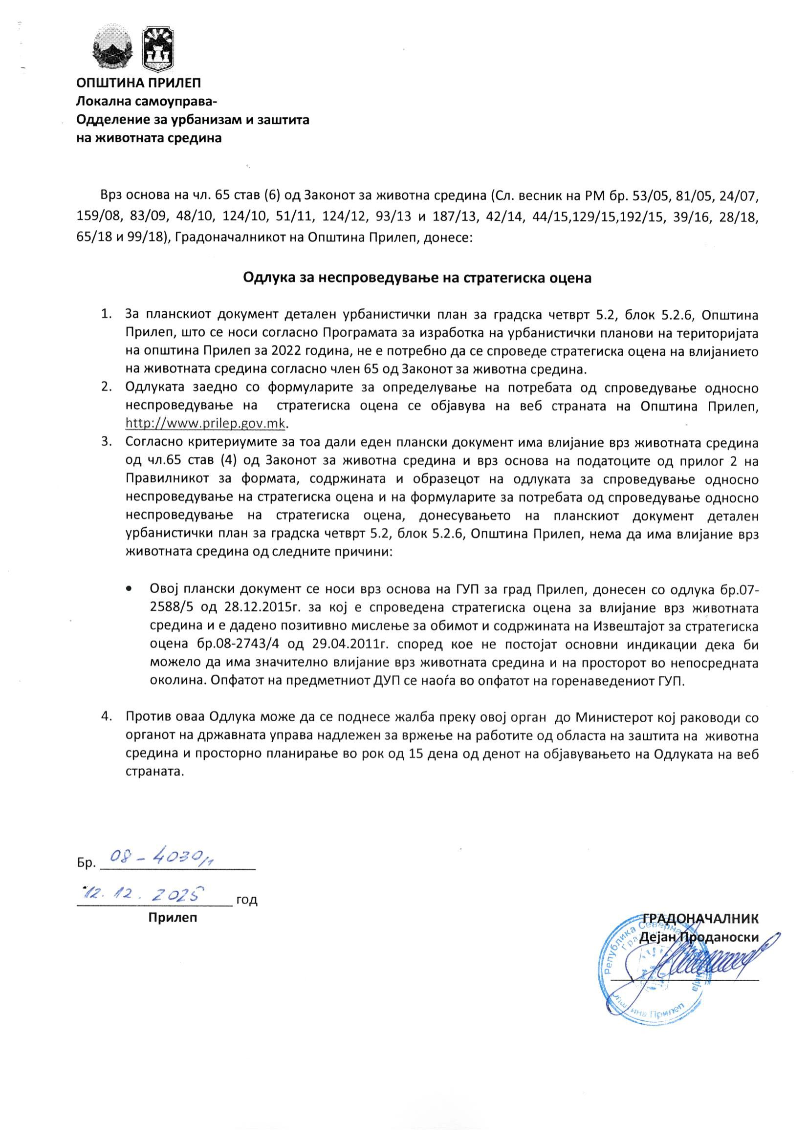 Соопштенија Одлука за неспроведување СЕА за ДУП блок 5.2.6 16.02.2026 FacebookTwitter ПРЕЗЕМИ Одлука за неспроведување СЕА за ДУП блок 5.2.6