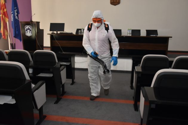 Истовремено, дезинфицирани беа и повеќе објекти на државни институции, влезови