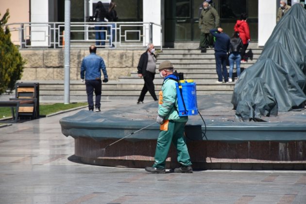 дезинфицираа и тесните улици од целата територија на градот, онаму каде