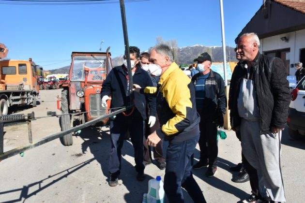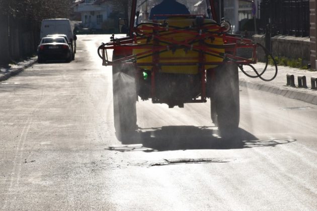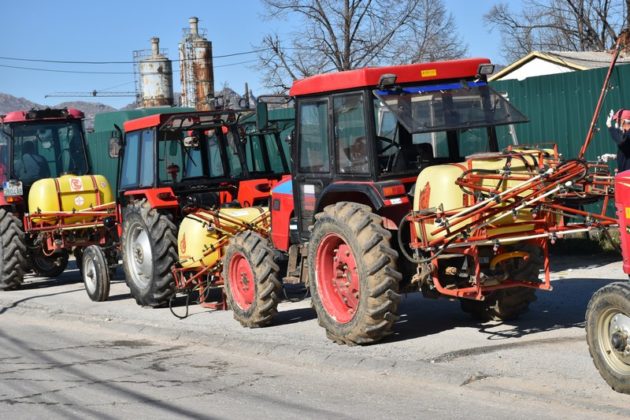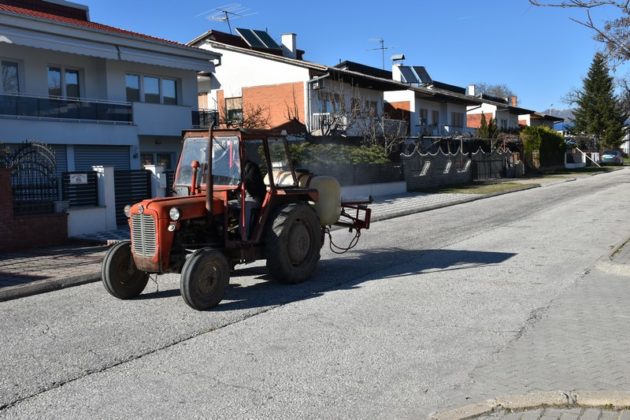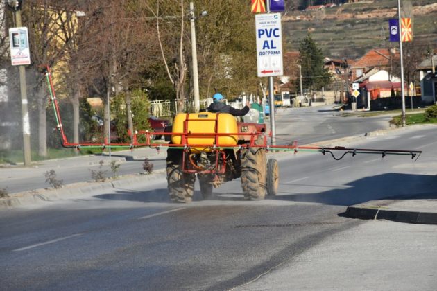 од градот и населените места, кои со триесетина трактори опремени со прскалки ги
