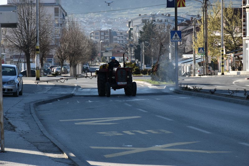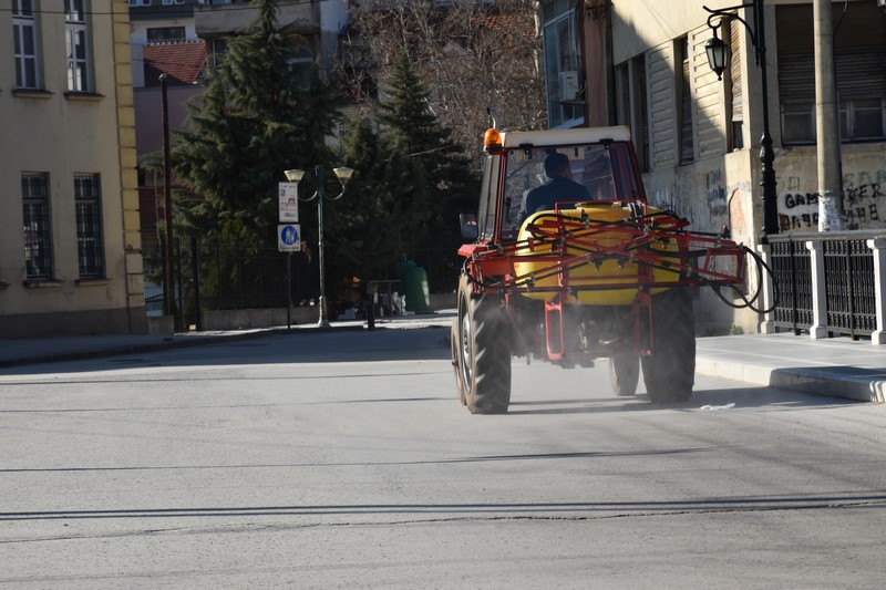 дезинфицираа и тесните улици од целата територија на градот, онаму каде