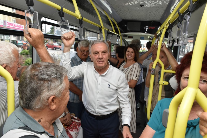 автобуси на метан во градскиот превоз, кои се конфорни со Еуро 6 стандард и ги задоволуваат сите еколошки барања, исполнето е и второто ветување за набавка на нови автобуси за градскиот превоз. Оваа категорија на граѓани, пензионерите, можноста за бесплатно возење ќе ја користат и во иднина и се надевам дека задоволството кај нив од користењето на услугите на новите автобуси, ќе биде уште поголемо“, истакна градоначалникот Јованоски.