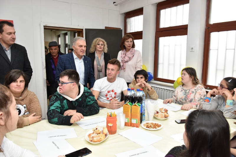 „Денеска сме во Дневниот центар за лица со интелектуална попречаност ‘Порака’. Им честитам за новите простории кои се реновирани, реконструирани, исполнети со нова опрема, каде лицата со интелектуална попречаност ќе имаат можност да се рекреираат, да се дружат и да се образуваат. Навистина сум среќен од изјавата на еден родител, кој вели дека неговото дете има постигнао голем напредок откако го посетува Дневниот центар. Ваквата инклузивност, им е повеќе од потребна на лицата со интелектуална попреченост, со цел надминување на предрасудите и бариерите кои стојат на патот. Овие деца ја имаат можноста да ги добијат сите бенефити од бизнис заедницата, министерствата, невладините организации од општината.